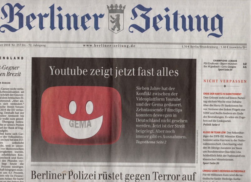 Terror in der BERLINER ZEITUNG am 2. November 2016 Jetzt muss er sich wohl bald einen Anwalt nehmen.