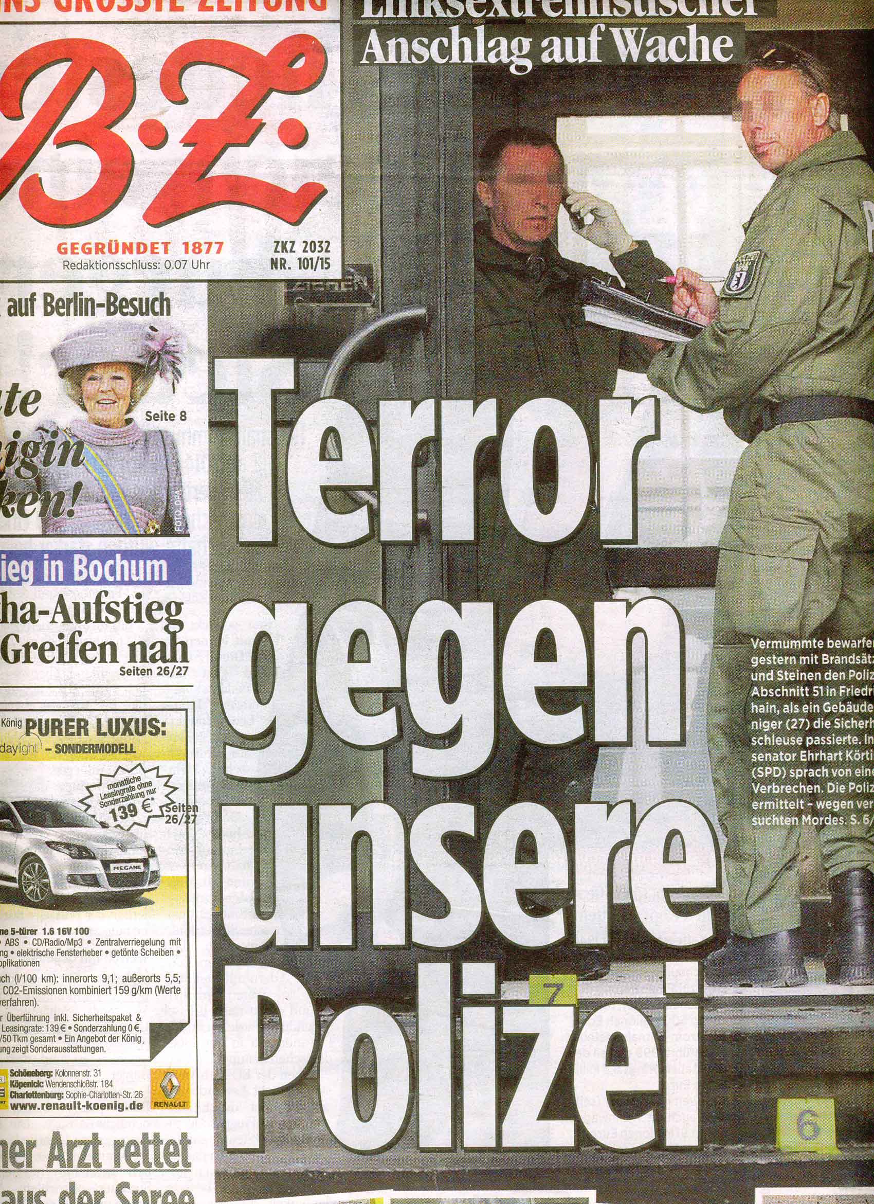 Terror in den Schlagzeilen der Berliner Zeitungen im Herbst 2010 Schlagzeilen in der Berliner Medienlandschaft im Herbst 2010 (Bitte auf das Bild klicken zum Vergrößern)